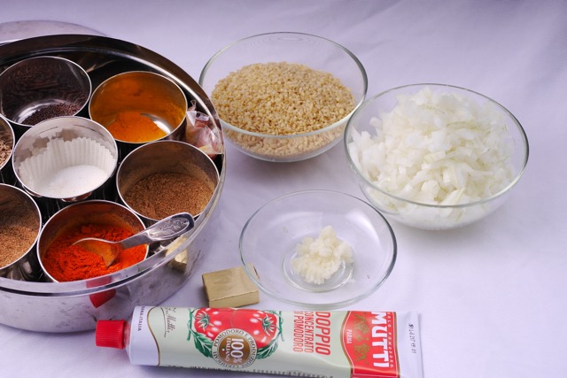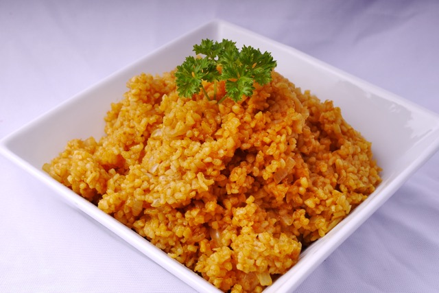 Here is a very simple recipe of bulgur with tomato. If you want to make it as paella or biryani, just add pieces of meat right before you put them in the oven.