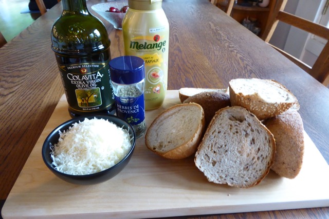 50% melted butter & 50% olive oil (the amount is up to how much bread you have.)
