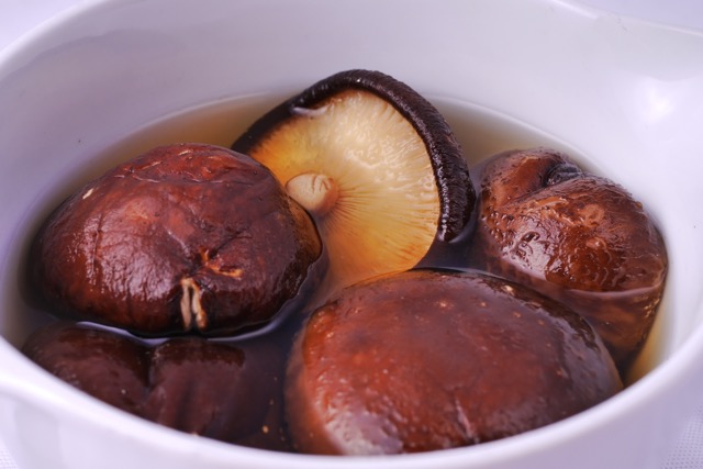 1) Soak dried Shiitake in a bowl of water until soft (you can soak overnight if you want.)